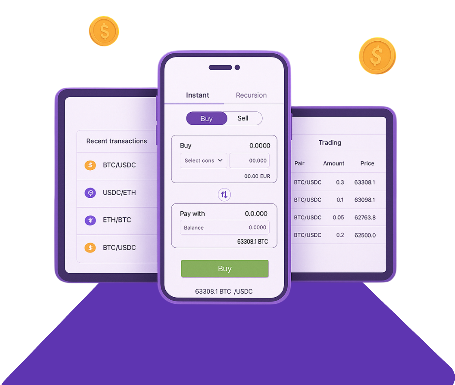 You can buy and sell with crypto and fiat currencies and start your trading process.